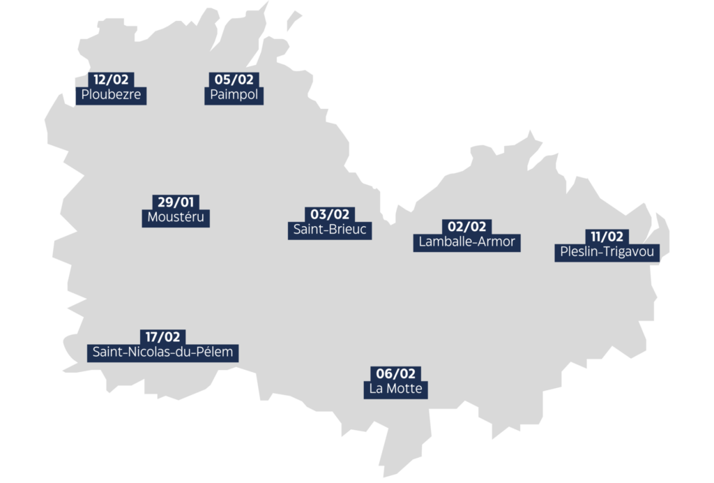 - Mardi 17 février, de 11h à 12h30, Douar Den, ZA du Ruellou, Saint-Nicolas-du-Pélem