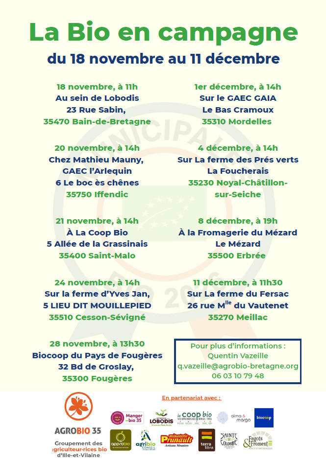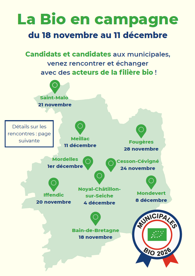 Rencontres entre acteur·rices de la bio et candidat·es aux élections municipales, du 18 novembre au 11 décembre – Ille-et-Vilaine.