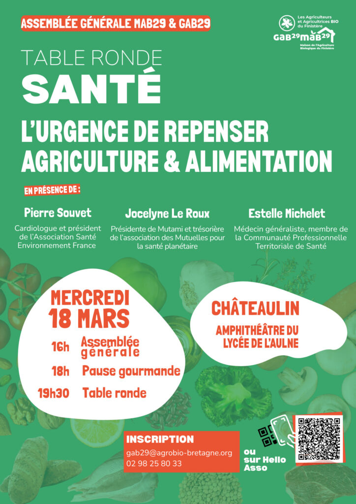 TABLE RONDE & ASSEMBLÉE GÉNÉRALE GAB29 et MAB29 : Santé, l’urgence de repenser agriculture et alimentation