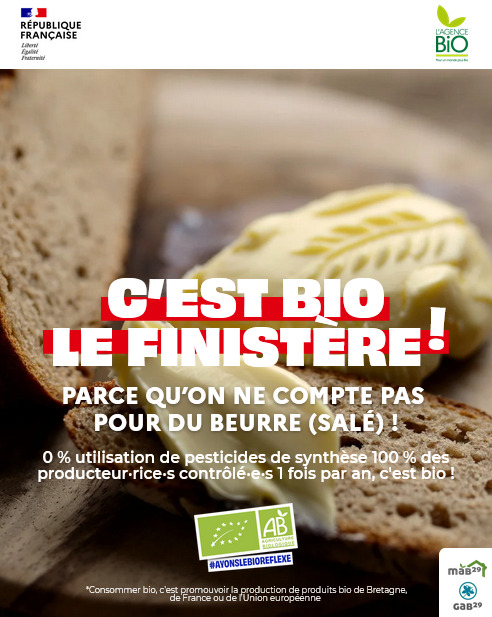 Du 23 septembre à la fin octobre, le réseau GAB-FRAB et IBB décline la campagne nationale « C’est Bio, la France ! » sur les réseaux sociaux en version 100 % bretonne : « C’est bio, la Bretagne », mais aussi « C’est bio le Morbihan », « C’est bio le Finistère », « C’est bio les Côtes-d’Armor » et « C’est bio l’Ille-et-Vilaine ».